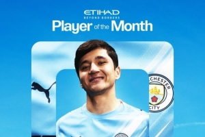 24直播网2月7日讯 曼城官方宣布胡桑诺夫当选球队1月最佳球员。