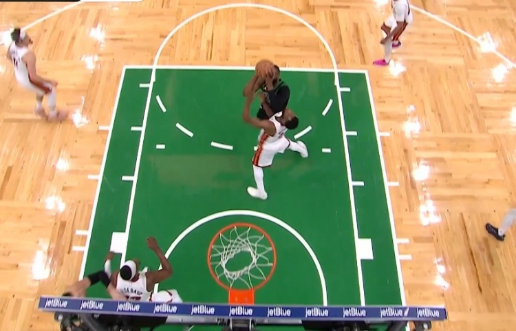 GIF-杰伦·布朗肘到维金斯打板命中被吹进攻犯规,绿军挑战失败