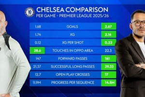 24直播网2月7日讯 天空体育统计了切尔西上任主帅马雷斯卡、现任主帅罗塞尼尔带队的数据,并做出对比。