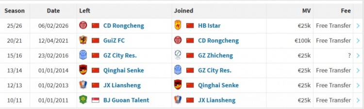 24直播网2月7日讯 根据德国转会市场网站信息显示,唐鑫已经离开成都蓉城,加盟了湖北青年星。
