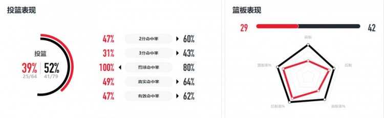 球队方面,厦门银行投篮命中率(包括两分球和三分球命中率)、篮板、助攻、抢断等数据皆与对手有不小的差距;山东女篮三分球命中16球,也比厦门女篮多6球;同时厦门女篮失误17-7比对手多10个。球员方面,外援马歇尔独木难支空砍24分8篮板;国内球员肖婉钰、赖一丹和李彤都拼劲十足,得分接近上双。