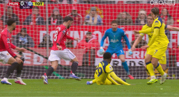 第23分钟,阿玛德右路突破横传禁区内,B费右脚顺势直接射门!皮球偏出球门左侧↓
