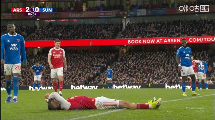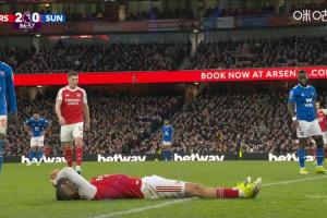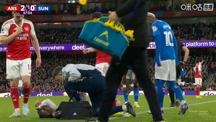24直播网02月08日讯 英超第25轮,阿森纳vs桑德兰。比赛第87分钟,特罗萨德突然躺在边线附近,疑似出现伤情。
