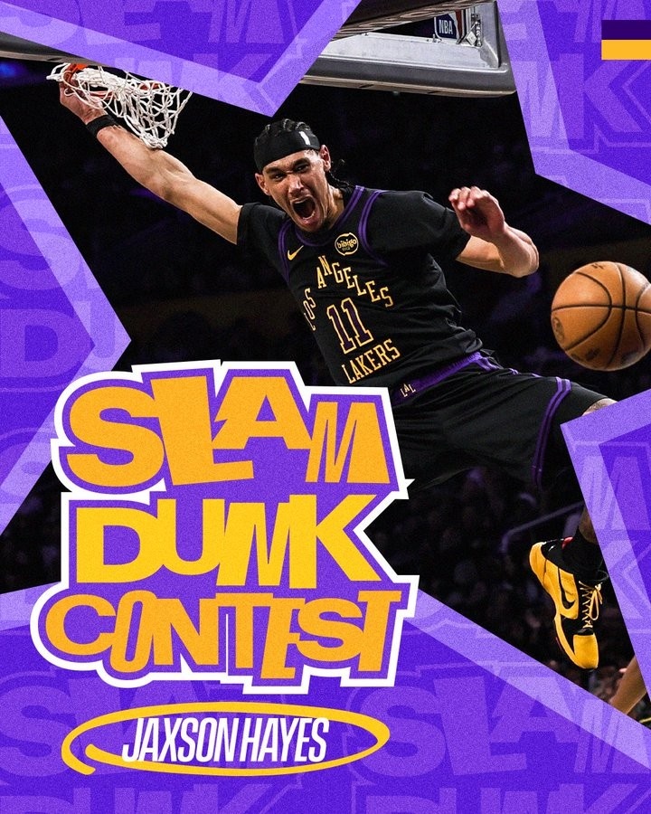 湖人官方晒出海斯扣篮海报,为其加油助威。