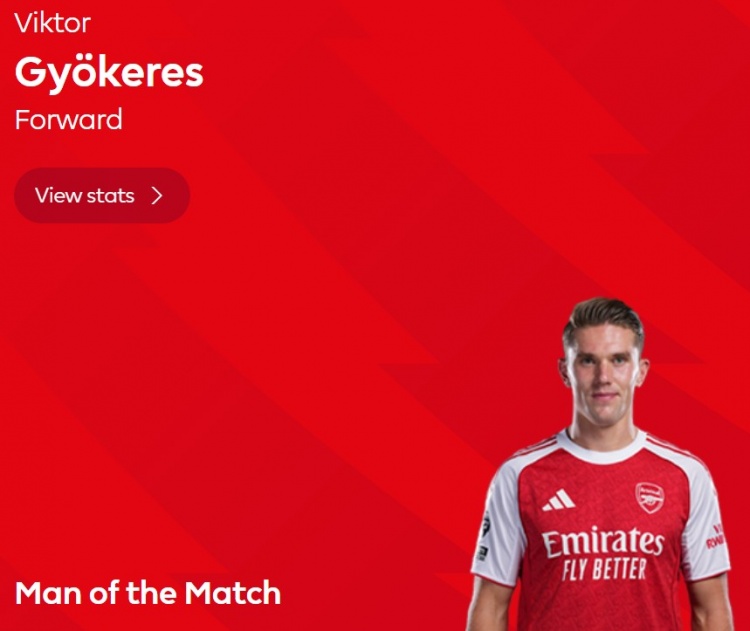 本场比赛约克雷斯替补登场30分钟时间就完成梅开二度,赛后他也当选英超官方球迷票选全场最佳球员。