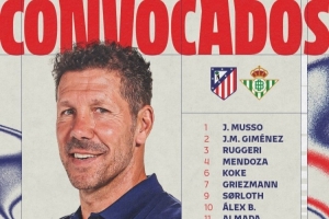 24直播网2月8日讯 北京时间明天凌晨,马竞将在西甲第23轮比赛中主场对阵贝蒂斯,马竞公布了此役的球员名单。卡尔多索、巴里奥斯缺席,瑟尔洛特回归。