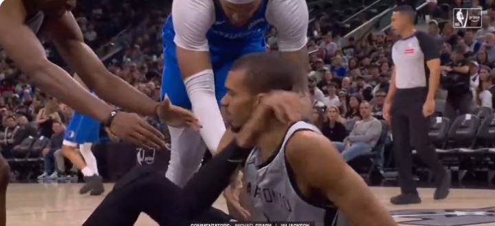 GIF-在场上就是对手!文班亚马拒绝让加福德拉起自己,一定要等队友!