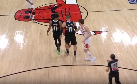 GIF-有点小情绪!瓦兰被吹进攻犯规抱着球 布泽利斯多次拿球都不肯给