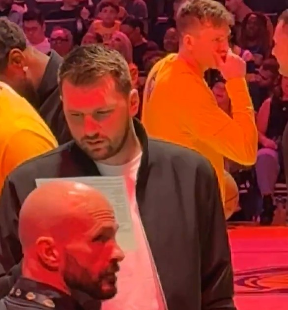 GIF-东契奇场边看技术统计