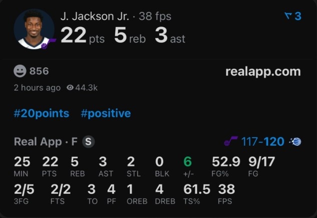 本场比赛,爵士新援小贾伦·杰克逊首秀表现不错,出场25分钟17投9中,三分5中2、罚球2中2拿到22分5篮板3助攻2抢断,正负值+6。
