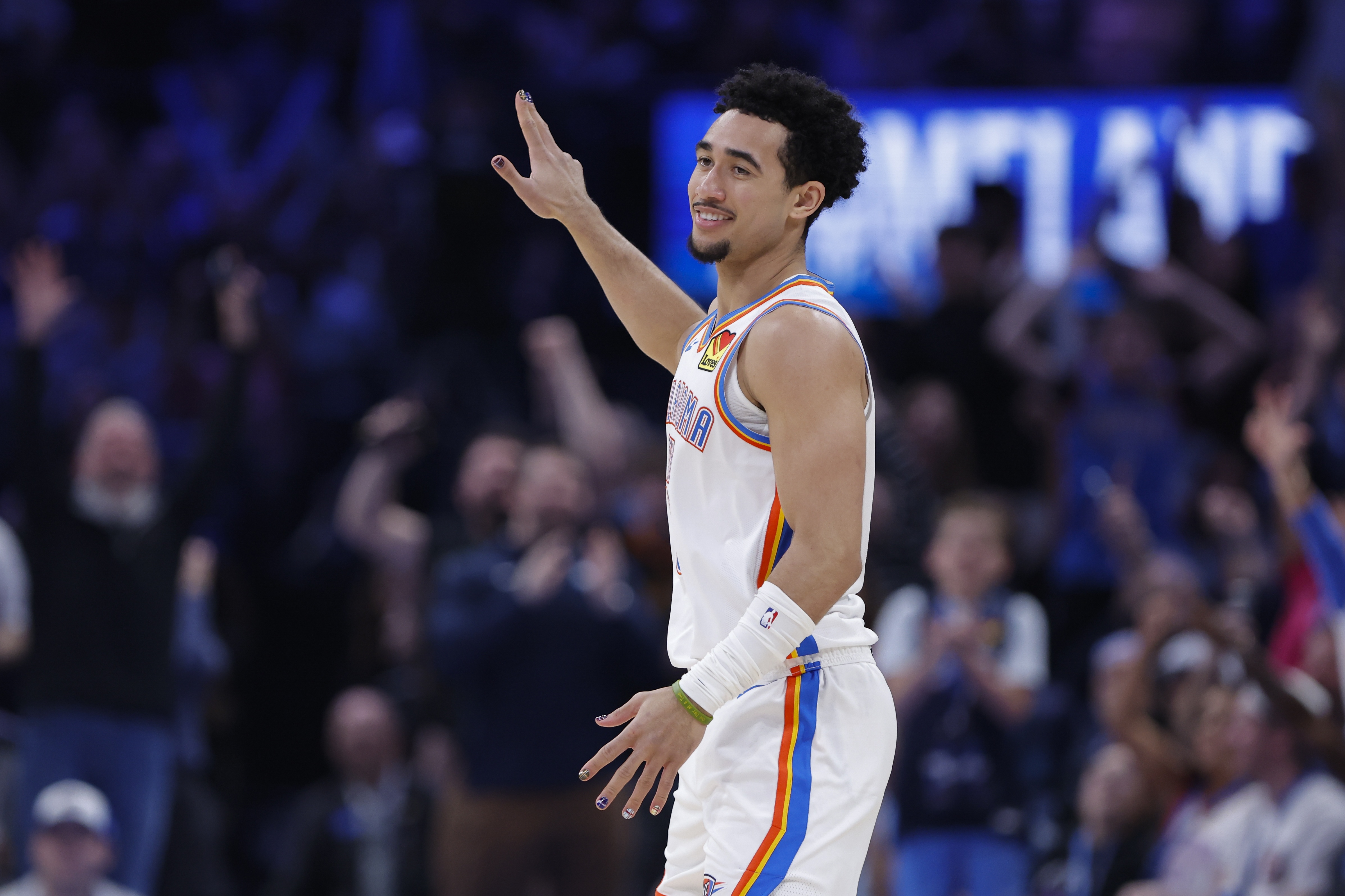谈及像今天给以赛亚·乔做后卫挡拆这种雷霆常用的战术,他适应得如何。麦凯恩表示:“高中时我也打过三后卫阵容,经常做挡拆顺下 / 滑出这类配合,给其他后卫做掩护。大学也是一样。所以我肯定很习惯,也很开心现在能这么打。”