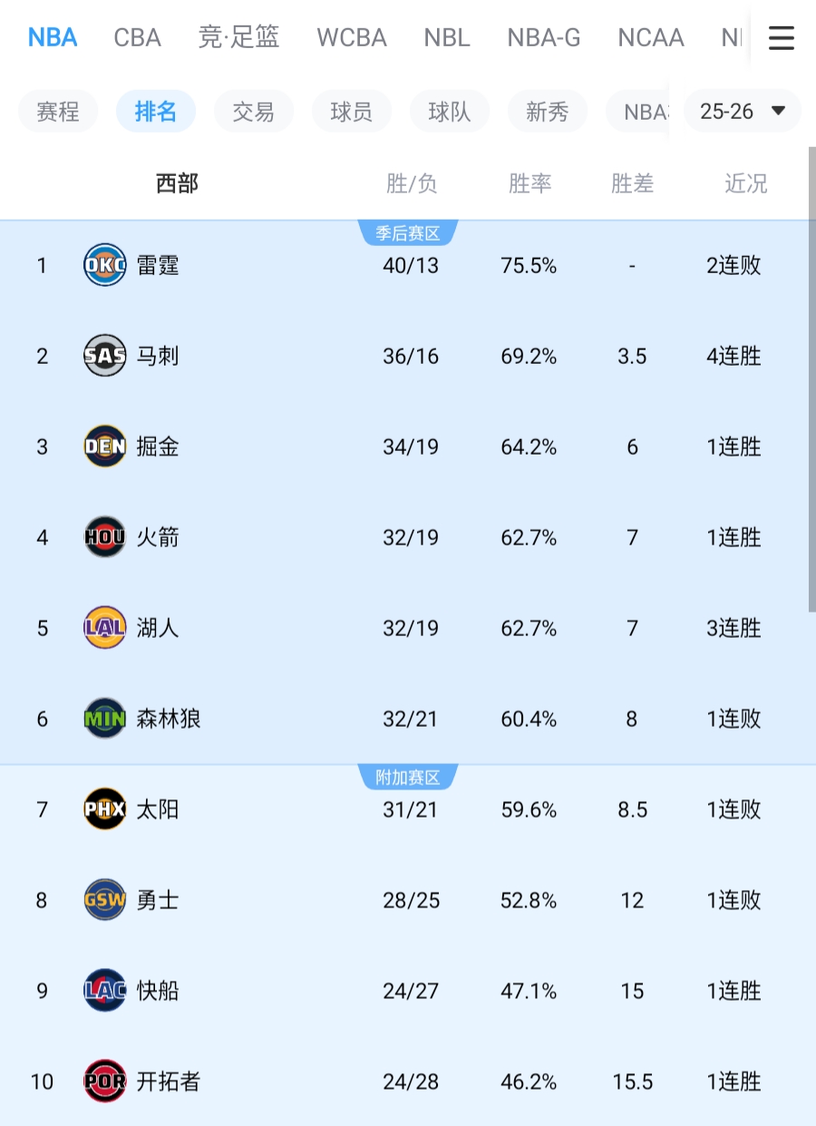 此役过后,湖人32胜19负战绩追平火箭继续排在西部第五,他们距离第三的掘金都仅差1个胜场。
