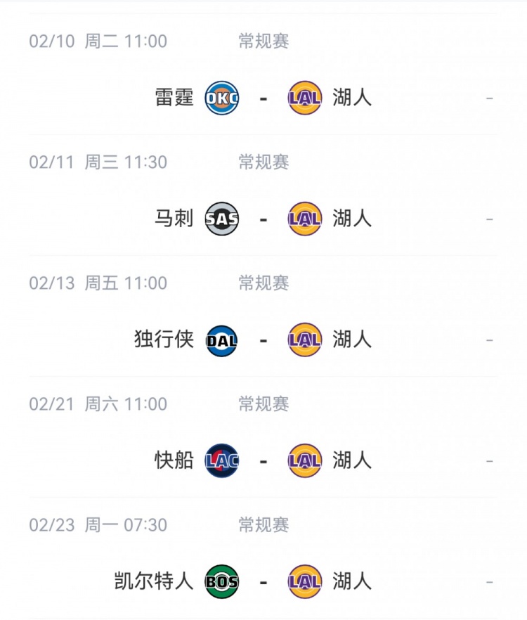 湖人自媒体BronMuse晒出了湖人未来5场赛程,并写道:“预测下湖人未来5场的战绩。”