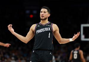 本场比赛缺阵近两周的布克复出,打了32分钟12投5中,三分7中1,罚球11中10砍下21分2篮板9助攻,出现4次失误。