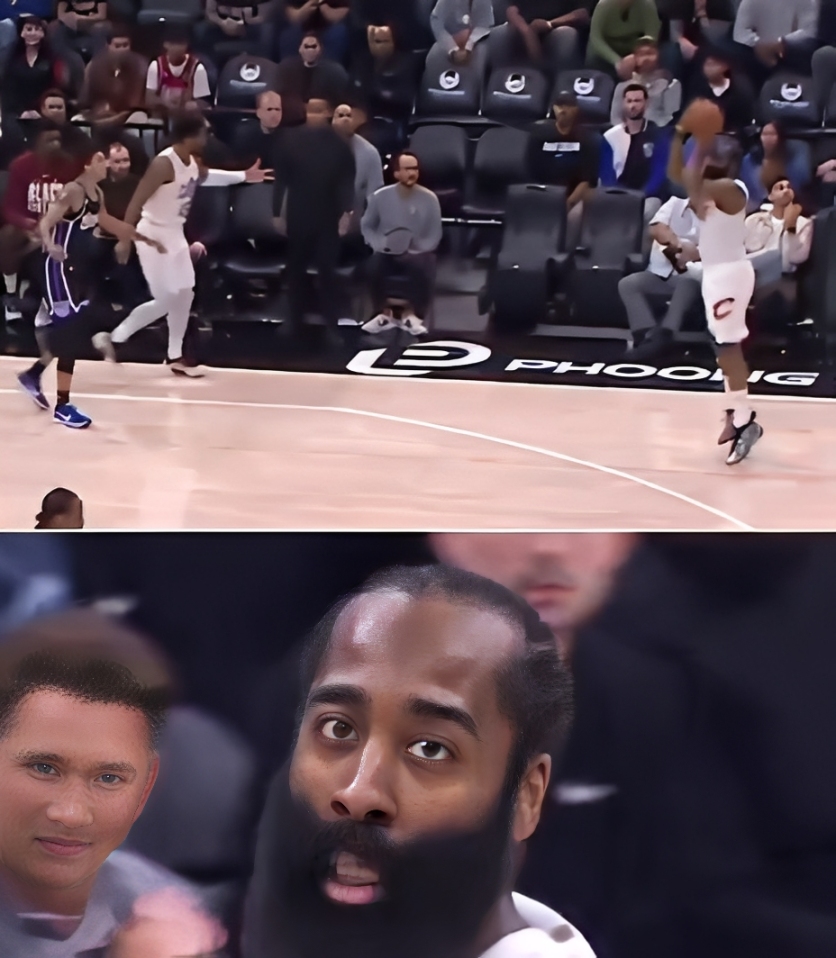 终场前2分多钟,骑士反击,米切尔回传助攻哈登命中空位三分反超比分。在哈登投进这球之前,米切尔已经提前庆祝了。