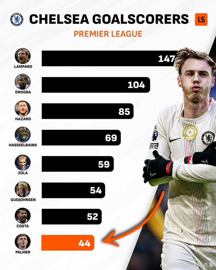 8️⃣ 帕尔默 – 44球🔥