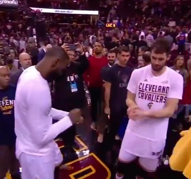 詹姆斯与前队友浓眉和克里斯蒂互动