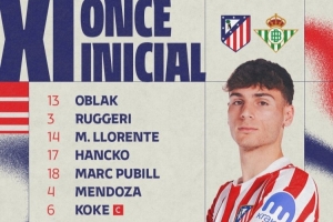 24直播网2月9日讯 北京时间今天1点半,西甲第23轮马竞主场对阵皇家贝蒂斯,此役首发已经公布。