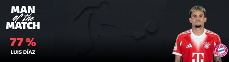 他本场比赛共计5射4正还有6次关键传球。也在赛后被德甲球迷票选为本场官方MVP,得票率77%。