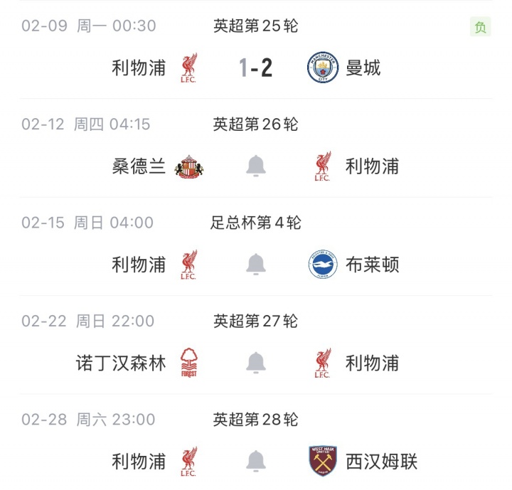 利物浦赛程: