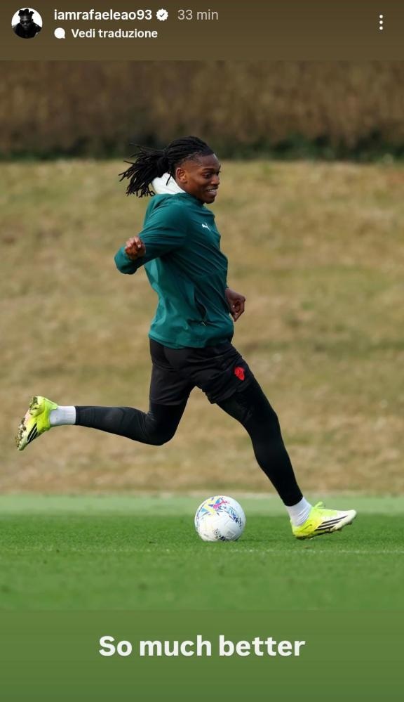 在对阵博洛尼亚的比赛前,主教练阿莱格里寄希望于到对比萨的比赛之前这9天的间歇期,能让莱奥至少恢复到良好的竞技状态。在球队收假恢复训练后,这位葡萄牙球星已经回归参与合练,目前的身体反馈非常积极。甚至莱奥本人也在社交媒体上亲自更新了动态,向大家通报:“感觉好多了。”