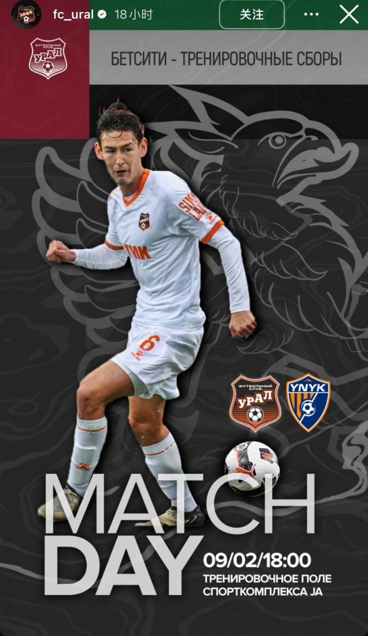 24直播网2月10日讯 据云南玉昆官博消息,球队在北京时间今天凌晨和俄甲球队乌拉尔进行热身,最终0-2不敌对手。