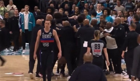 GIF-活塞黄蜂大规模冲突 邓罗瞅了一眼直接走开战圈
