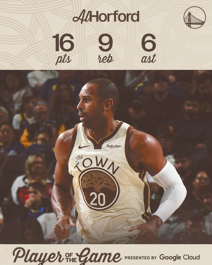 赛后,勇士官推评选本场最佳球员,老将霍福德当选。