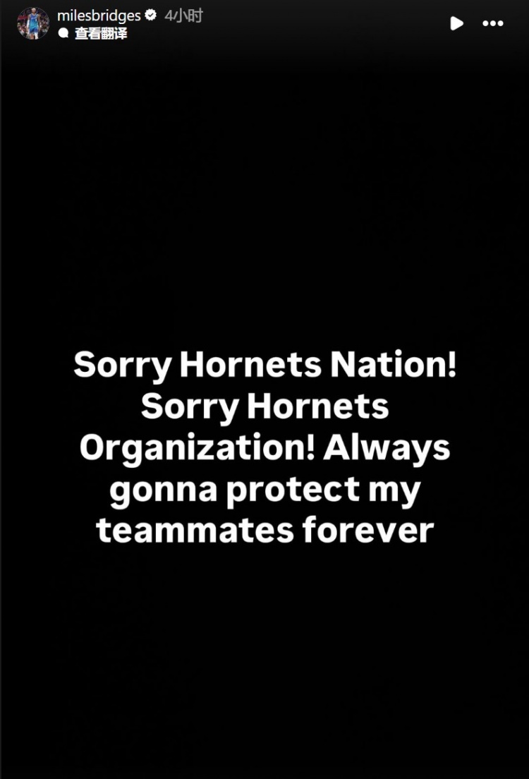 赛后,布里奇斯在INS发文道:“对不起黄蜂国度!对不起黄蜂队!我永远都想保护我的队友。”