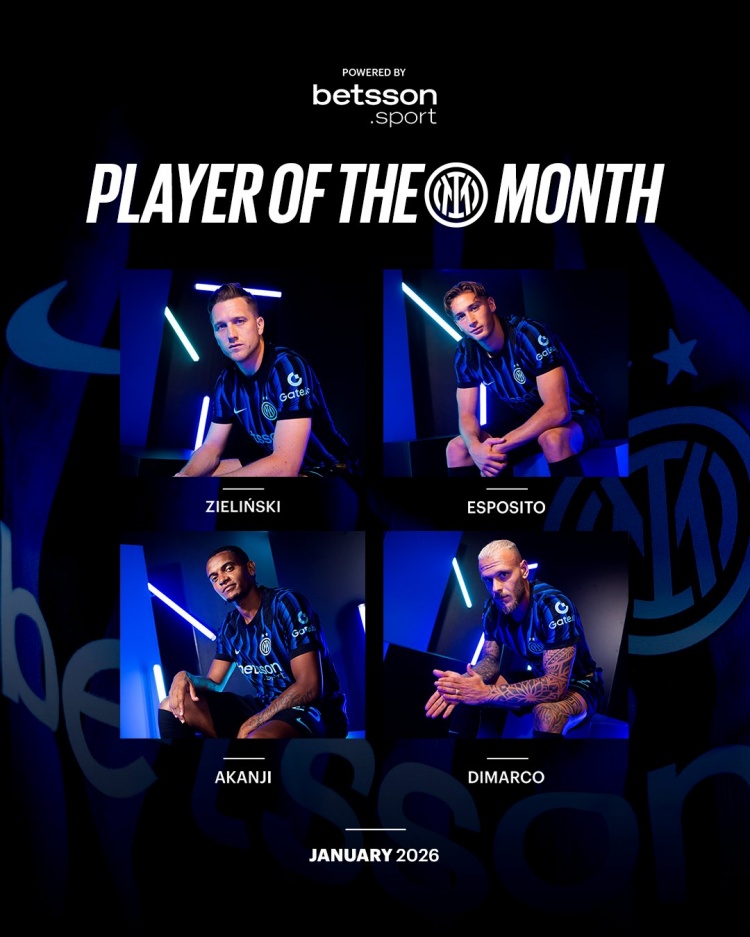 24直播网2月10日讯 国米官方公布1月份队内最佳球员的候选名单,泽林斯基、埃斯波西托、阿坎吉、迪马尔科在列。