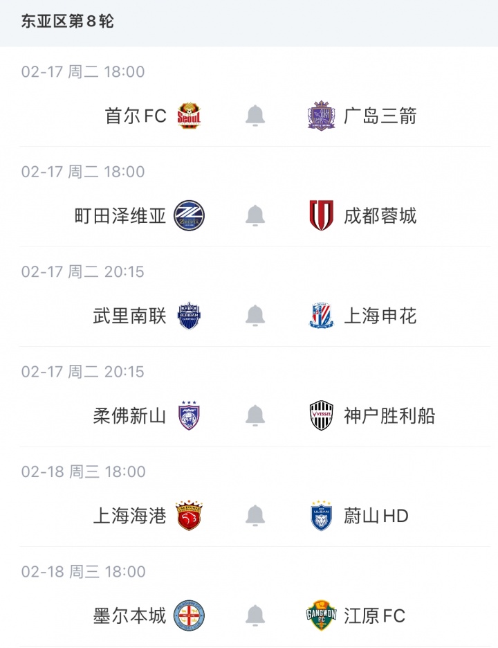 2月17日大年初一晚20:15,申花将作客对阵亚冠精英联赛阶段的最后一个对手武里南联。