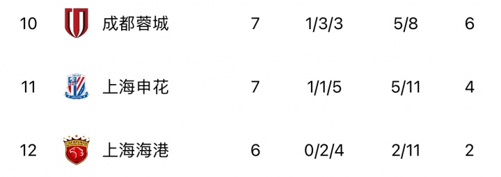 上海海港:0胜2平4负