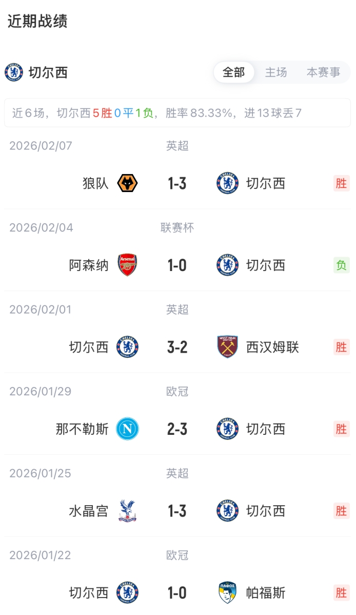 切尔西首发:1-桑切斯、27-古斯托、34-乔什·阿昌庞、23-查洛巴、3-库库雷利亚、25-凯塞多、17-桑托斯、10-帕尔默、8-恩佐、41-埃斯特旺、20-若昂·佩德罗