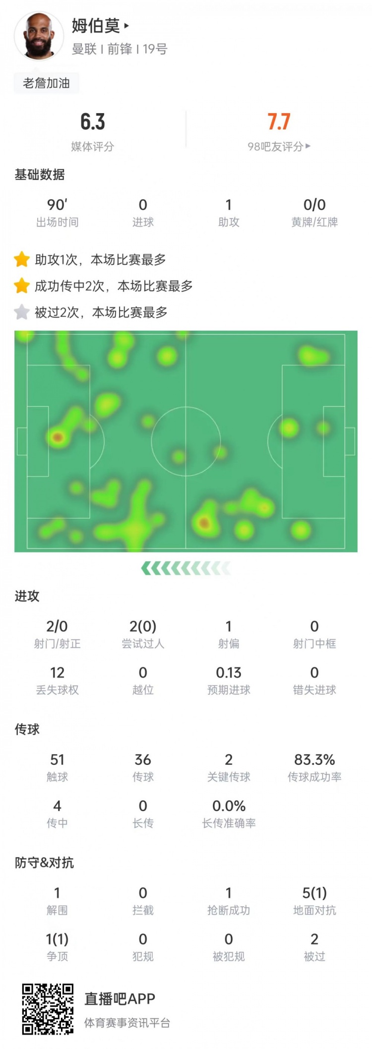 姆伯莫本场数据: