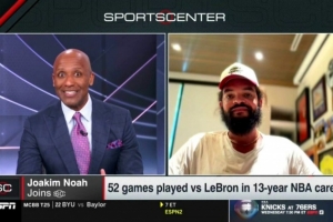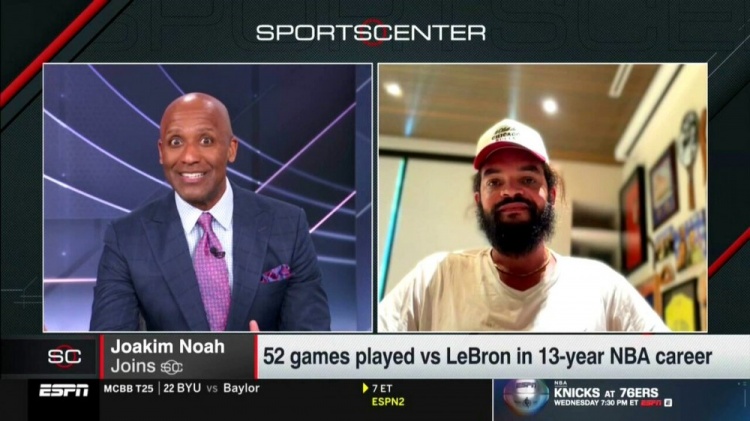 24直播网2月11日讯 今日,前NBA球员诺阿做客ESPN电视节目《Sports Center》,谈到湖人前锋詹姆斯。