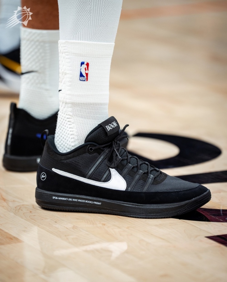 本场比赛布克上脚了一双与潮流大师藤原浩的联名鞋款Book 2 Fragment。这也是布克球鞋连续两年和藤原浩的Fragment进行联名企划。