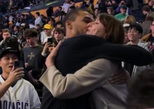 GIF-文班和母亲拥抱致意