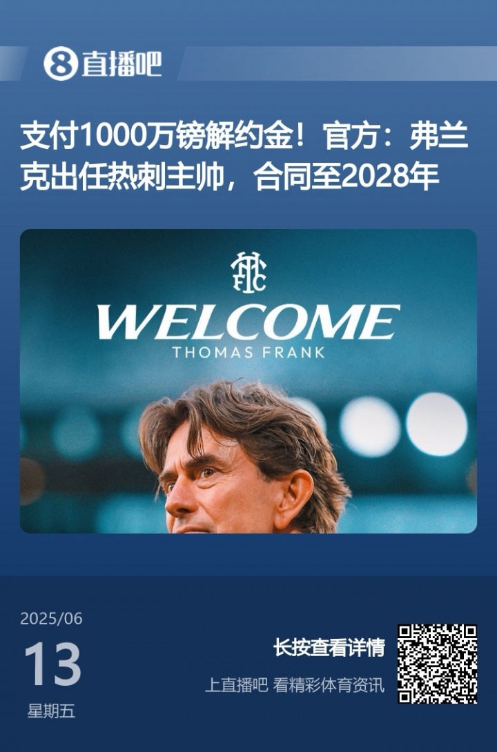 去年夏天,热刺从布伦特福德挖角弗兰克,为此花费了1000万英镑的违约金。
