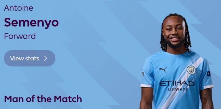 本场比赛塞梅尼奥首发传射建功,赛后他也当选英超官方球迷票选全场最佳球员。