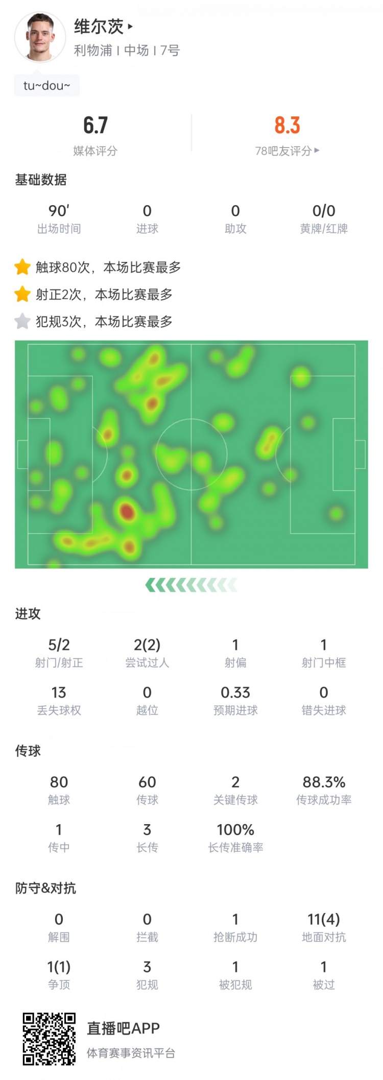 24直播网2月12日讯 英超第26轮比赛,维尔茨踢满全场,利物浦客场1-0击败桑德兰。