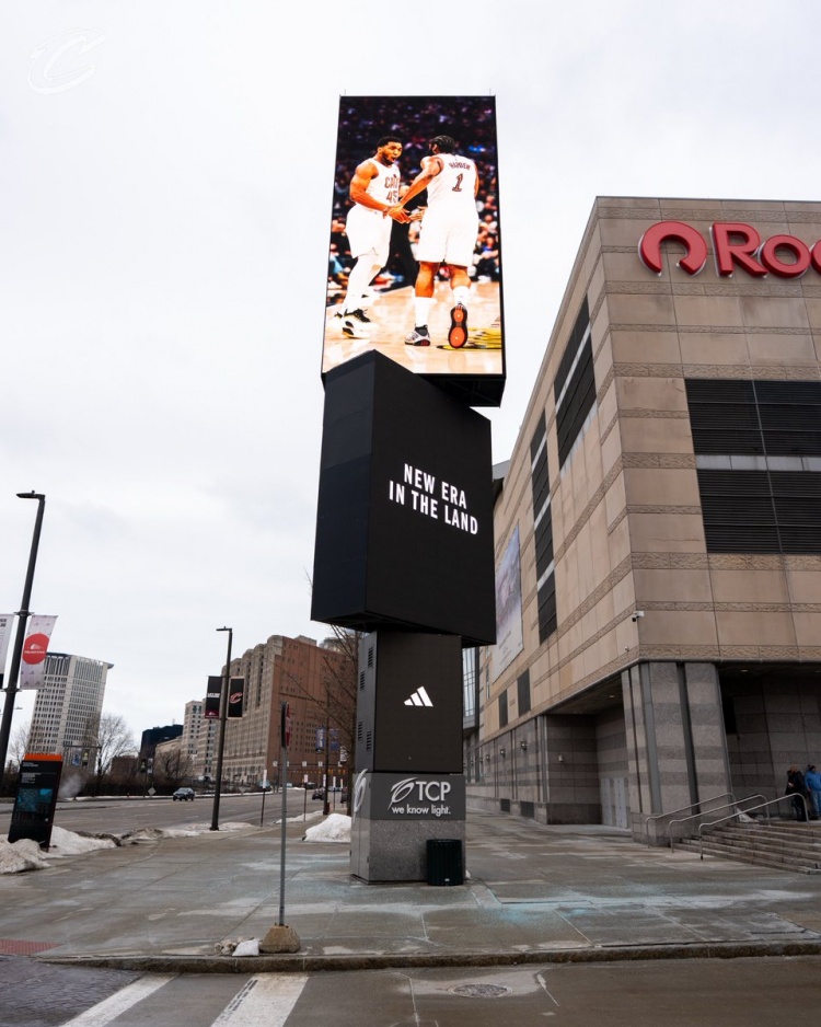 骑士官方晒出米切尔与哈登同框广告牌:今夜,克利夫兰将迎来崭新篇章。