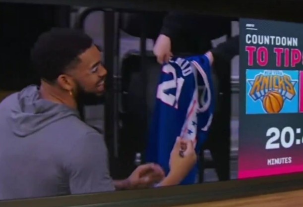 GIF-唐斯给恩比德球衣签名