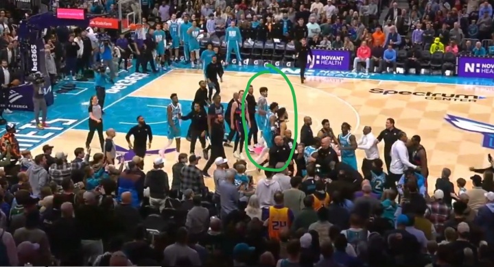 值得一提的是,当时是替补的拉梅洛·鲍尔也冲进了球场,但他没有直接参与冲突,联盟最终也放了他一马,没有处罚他。