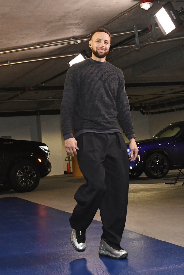 球鞋自由球员库里赛前入场致敬马刺名宿邓肯,他穿了一双邓肯的Nike Total Air Foamposite Max球鞋入场。