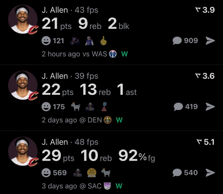 值得一提的是,在哈登加盟后的三场比赛中,阿伦分别得到了29分、22分、21分。场均贡献24分10.7篮板,投篮命中率80.6%(共计36中29)!