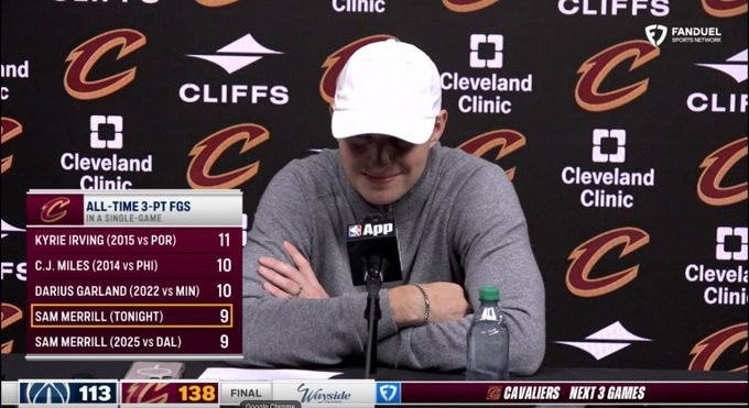 此外,梅里尔是骑士队史首个多次单场轰进9+三分的球员,他在2025年2月3日对阵独行侠的比赛中也命中了9个三分!